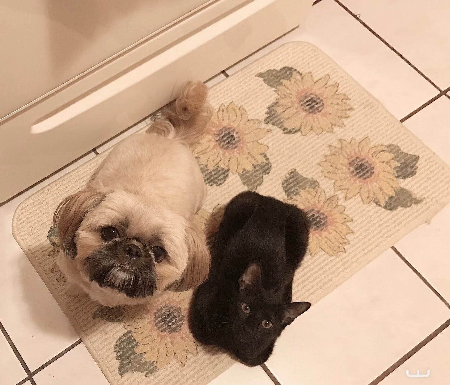 I love Yennefer of Vengerberg from The Witcher 3: Wild Hunt so much that I named my cat after her. She is five years old, a beautiful black cat with eyes that are either green or yellow depending on the day. She’s extremely talkative and stingy with overt affection, and I love her very much. She didn’t interrupt my Future Friend calls anywhere as much as our doggo, an adorable Shih Tzu named Kento who snores like a train. They are everything in our little household, here is a picture of them:
