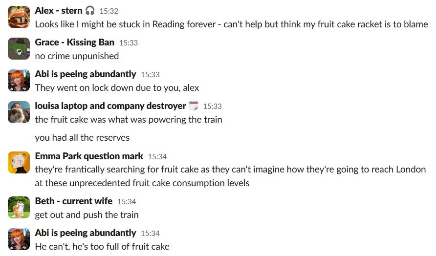 🍎 Alex ate copious amounts of fruitcake this month to the detriment of railway workers everywhere.